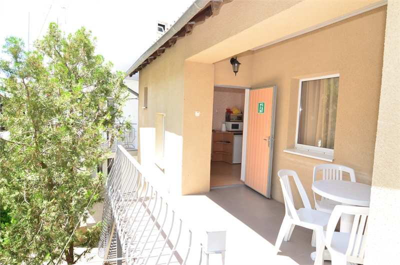 2-комнатный номер состоит из спальни: (двуспальня кровать, шифоньер, трюмо, гладильная доска, утюг, фен, полотенца), гостинной: (кондиционер, телевизор, двуспальная софа, кресло-кровать, стол, комод, посуда, электрочайник, фумигатор, а также прихожей с холодильником и микроволновой печью и терассы со столом и стульями. Номер расчитан на четверых человек. Кресло-кровать считается дополнительным местом.