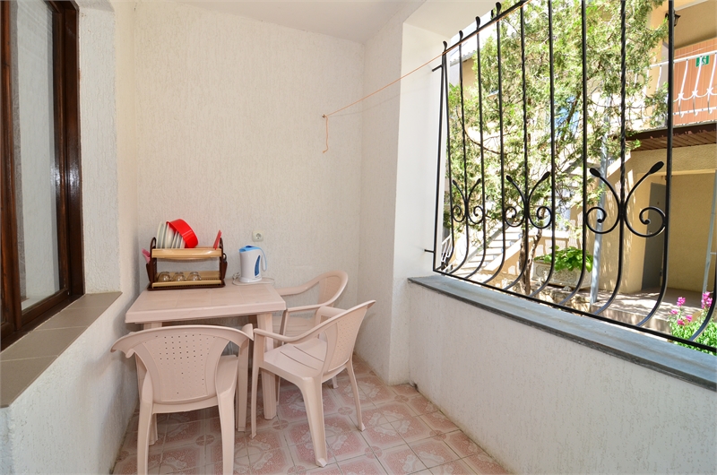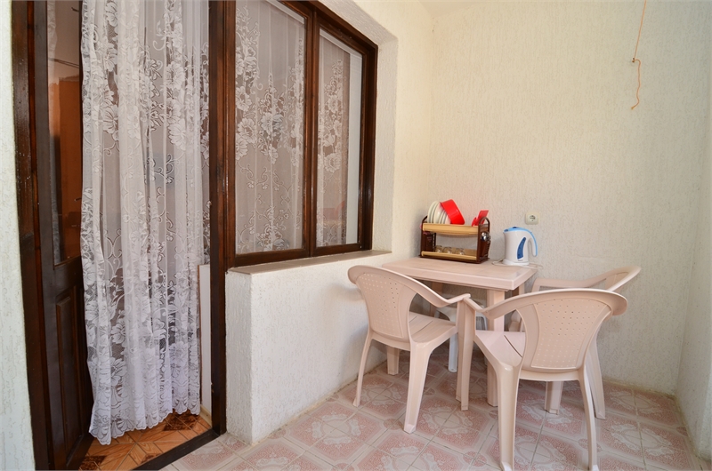 Коттедж "МАРИЯ". Коттедж состоит из жилой комнаты, площадью 14 кв.м., совмещенного санузла площадью 3 кв.м. и лоджии площадью 7,2 кв.м. Общая площадь - 24 кв.м. В номерах: кондиционер, холодильник, СВЧ-печь, телевизор, электрочайник, стол, стулья, табуретка, фумигатор, махровые полотенца, туалетная бумага, зеркало, вешалка, пластиковый таз. На окнах москитные сетки.